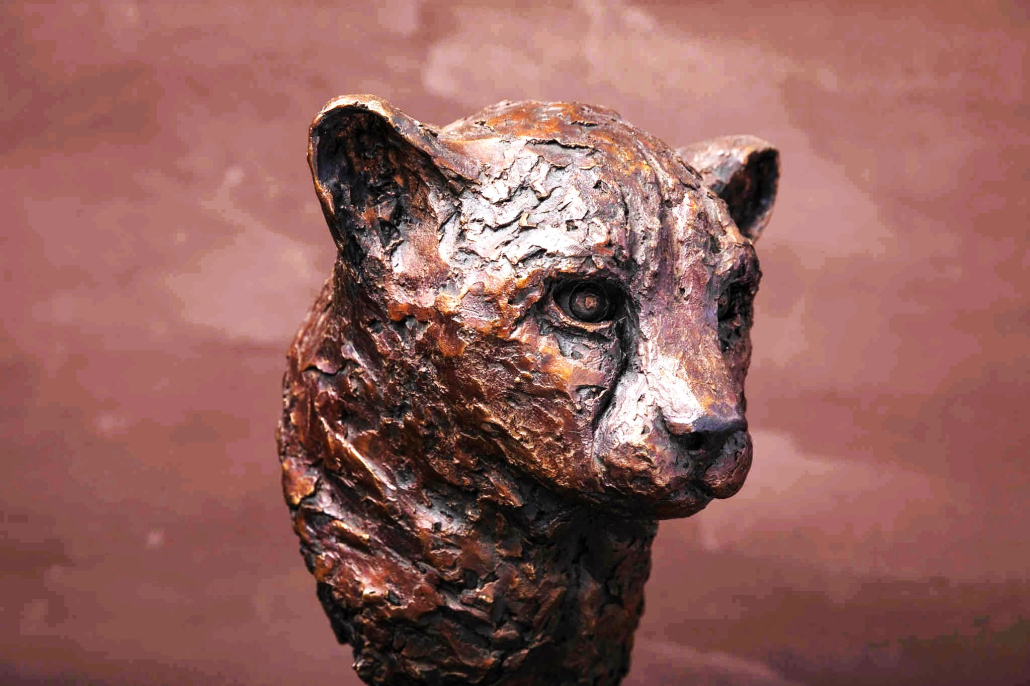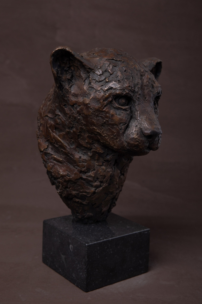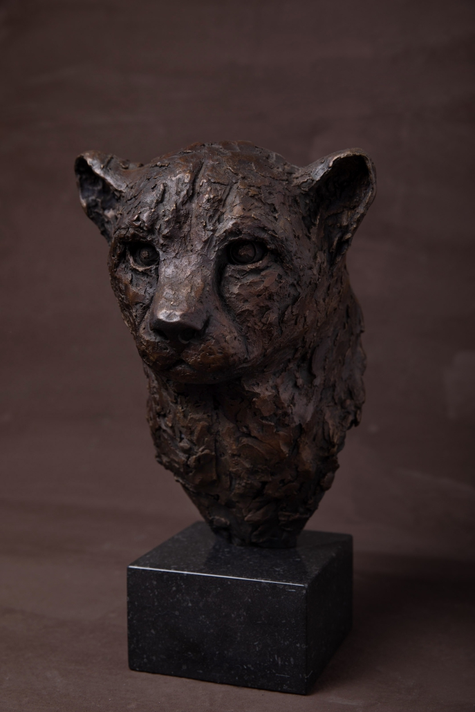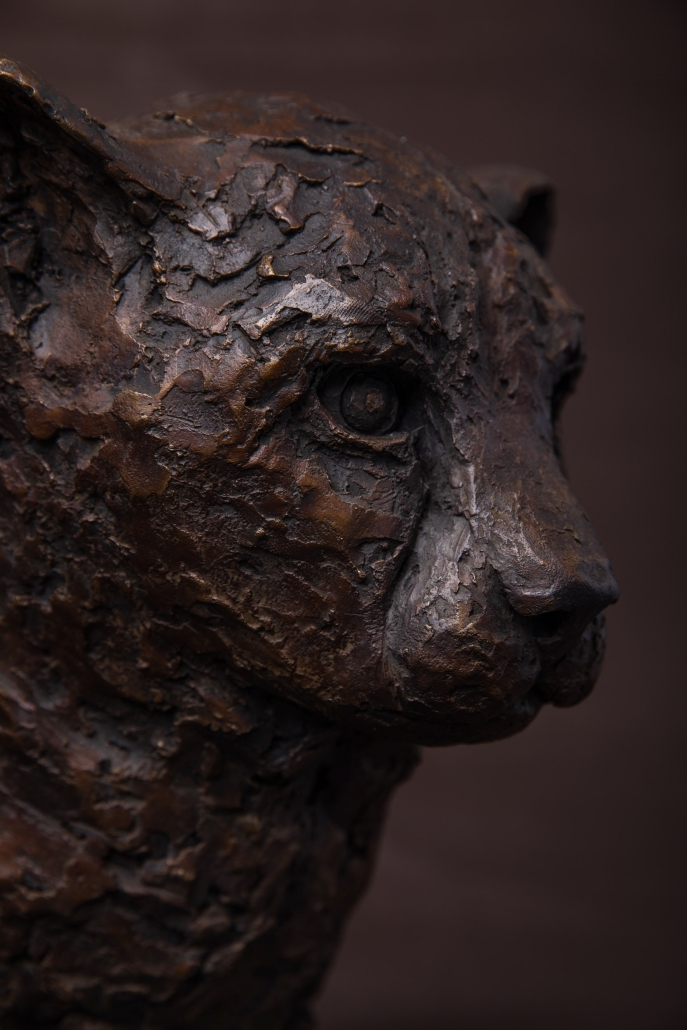 Another favourite animal in the bush. With a body built for speed, the head of the cheetah appears out of proportion. So in this piece, I’ve only done the head. A magnificent animal with very noticeable ‘tear marks’ running either side of the snout. Like the Leopard, the hunting stare is intense.