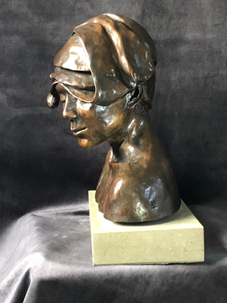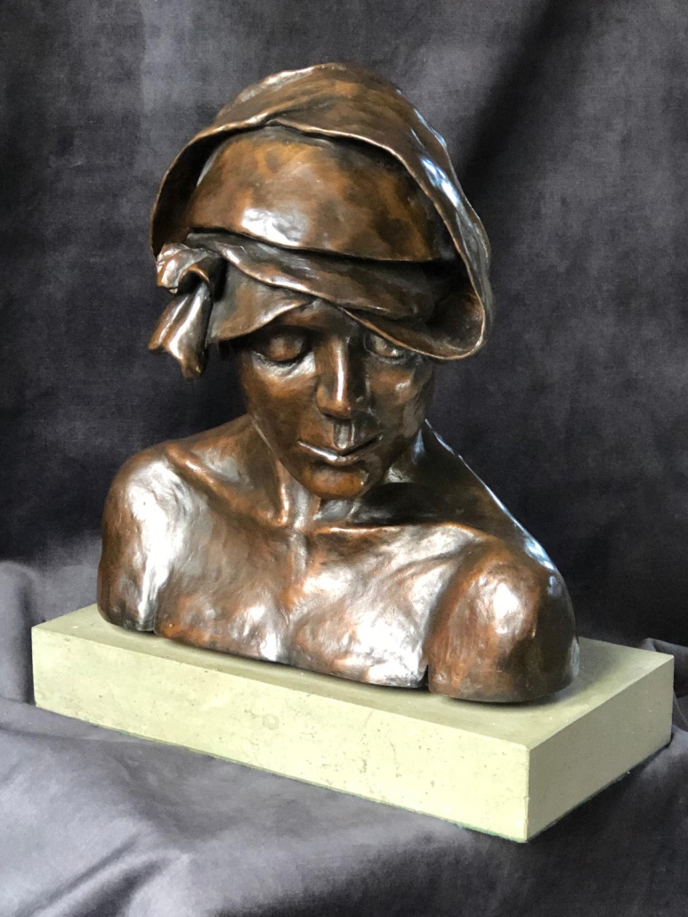 Clementine  –  in Bronze.  Positioned on an Hornton Stone base.