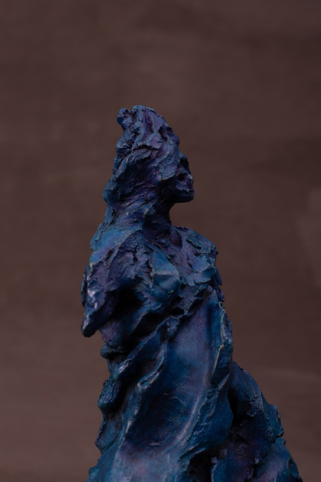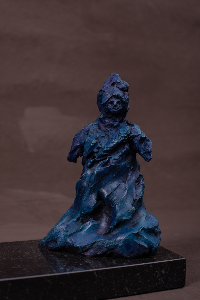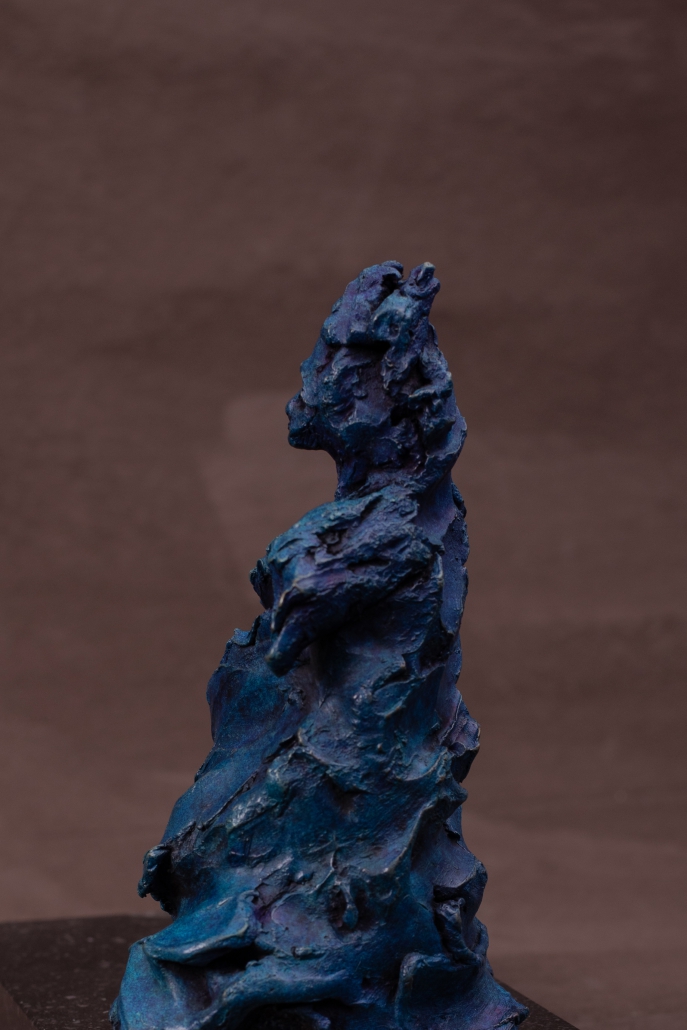 We used cobalt blue patina to accentuate the joy of dance – a young woman enjoying the uninhibited movement of dance – enjoying herself.